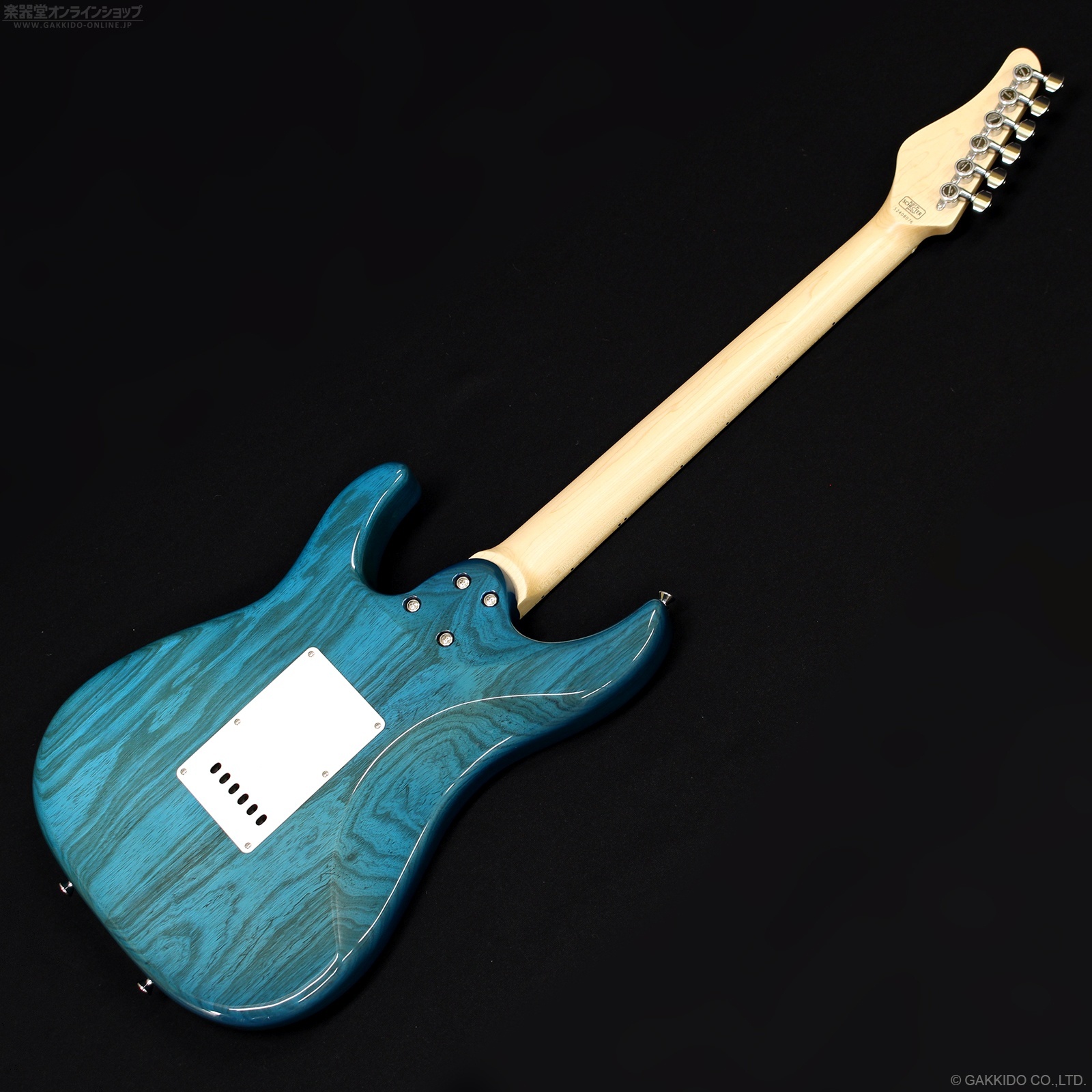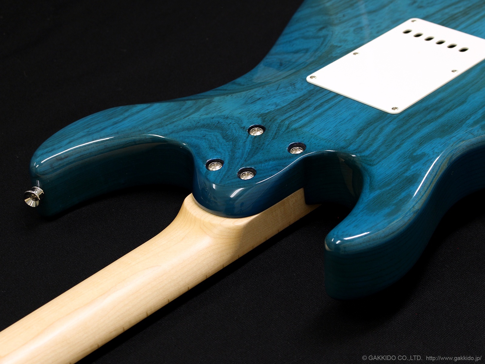 アッシュの木目が透き通って見える爽やかなブルーカラーのメイプル指板ver。モダンでスマートなオリジナルシェイプのボディに、24Fメイプル指板を採用。
