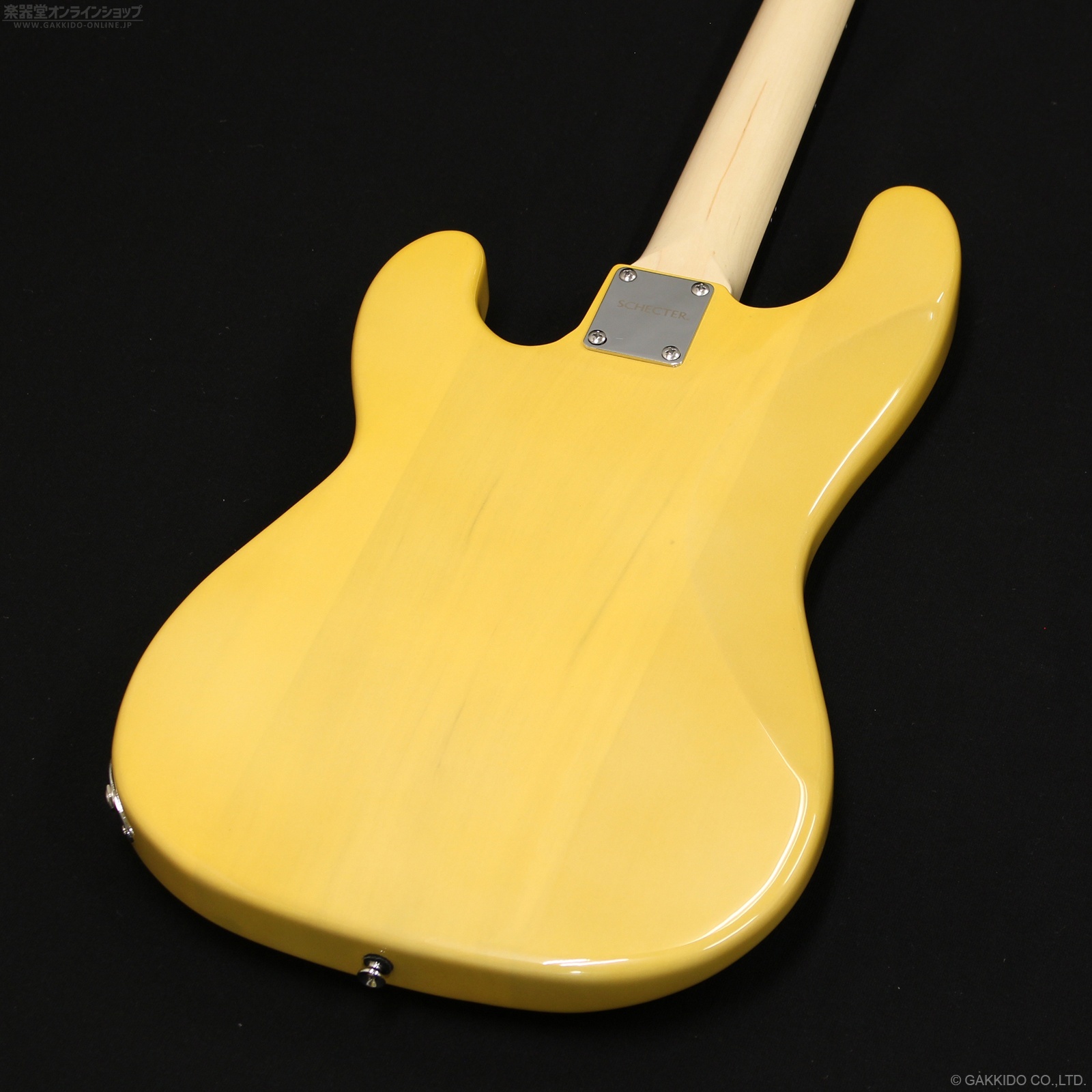 ボディにポプラ材、メイプルネック、濃い色のローズウッド指板を採用。ボディバックにコンター加工を施し演奏性も高めています。握りやすいネックやボディバックのコンター、斜めにカットが入ったアングルネックジョイント、21フレットなど現代的なスペックを持ち、この価格ながらシェクターらしいプレイアビリティが特徴です。