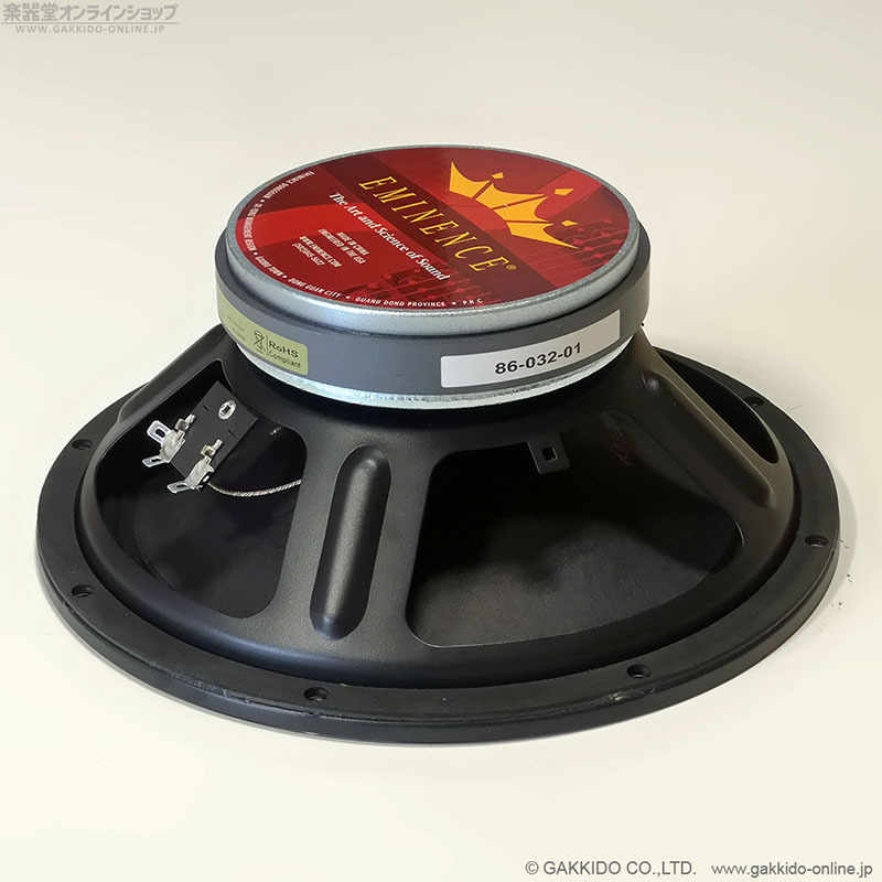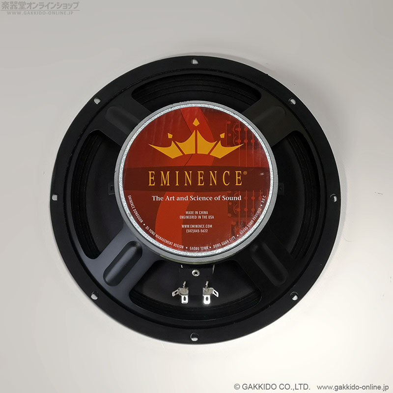 スピーカー製造元はエミネンス(Eminence)、口径10インチ、インピーダンスは32オーム、許容入力は100Wとなっています。