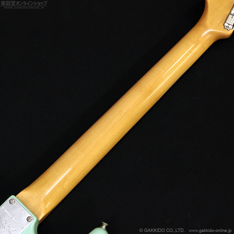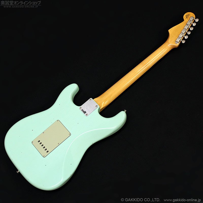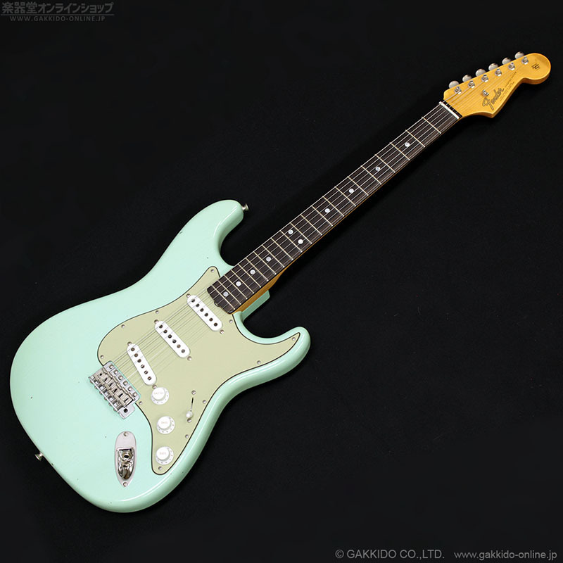 カラーはエイジド・サーフグリーンのジャーニーマン・レリック仕上げ。金属パーツ類はクローゼット・クラシック仕上げとなっています。'65ということでピックガードはミントグリーン。