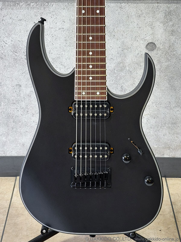 精悍なサテンブラックカラー。アイバニーズRGの7弦ノントレモロ、2ハムバッカーモデル
