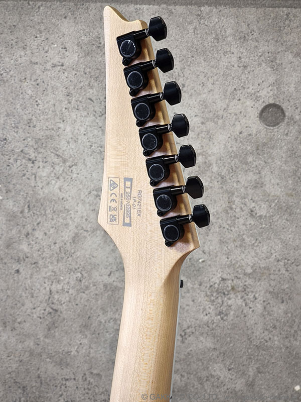 弾きやすさを追求した薄めのWizard II-7ネックシェイプ、音の輪郭を失わない低音域とキレの良い高音域が特徴のIbanezオリジナルピックアップである“Quantum 7”を搭載。