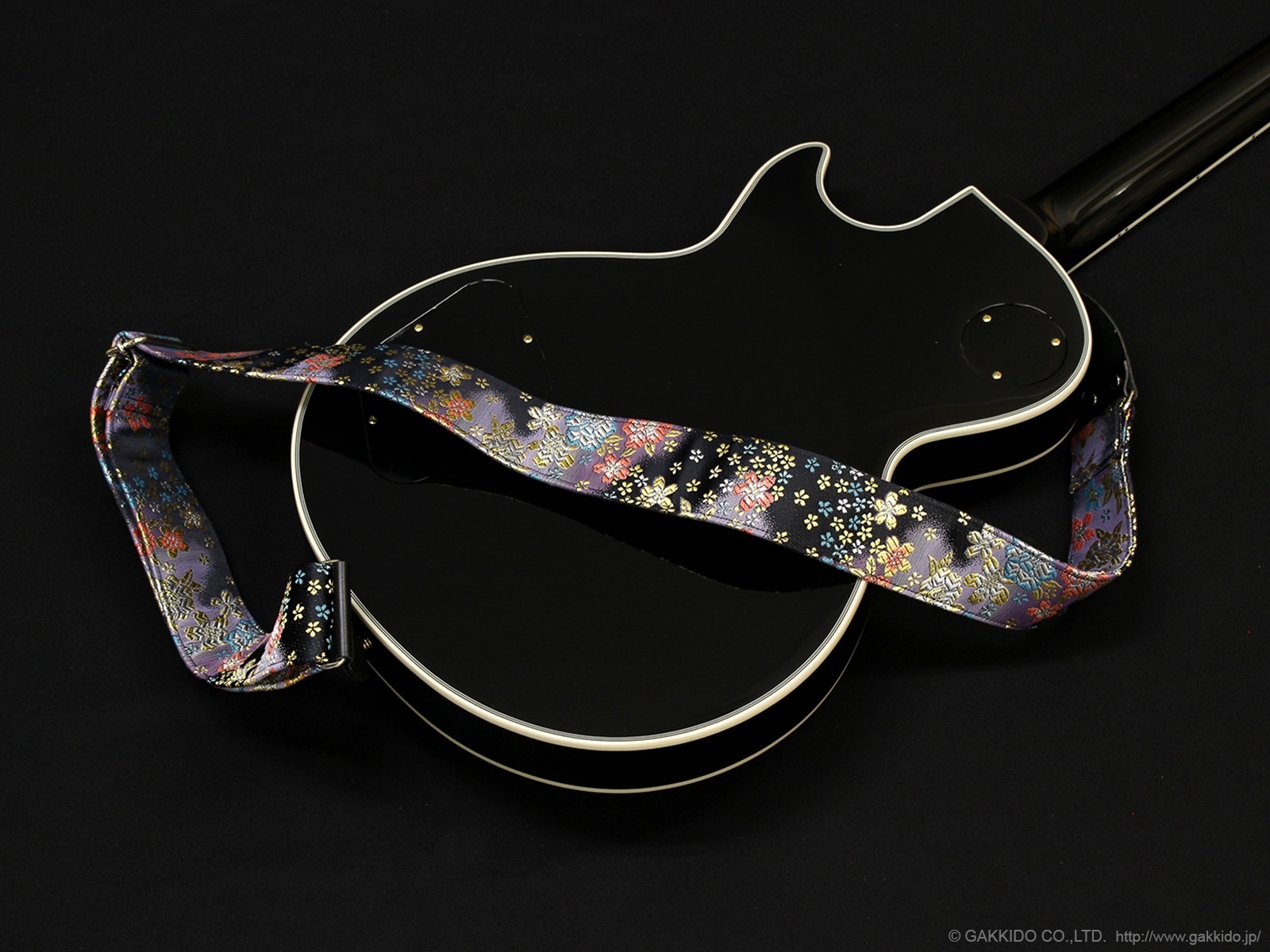 日本を代表する絹織物「西陣織」の布で作ったギターストラップ。