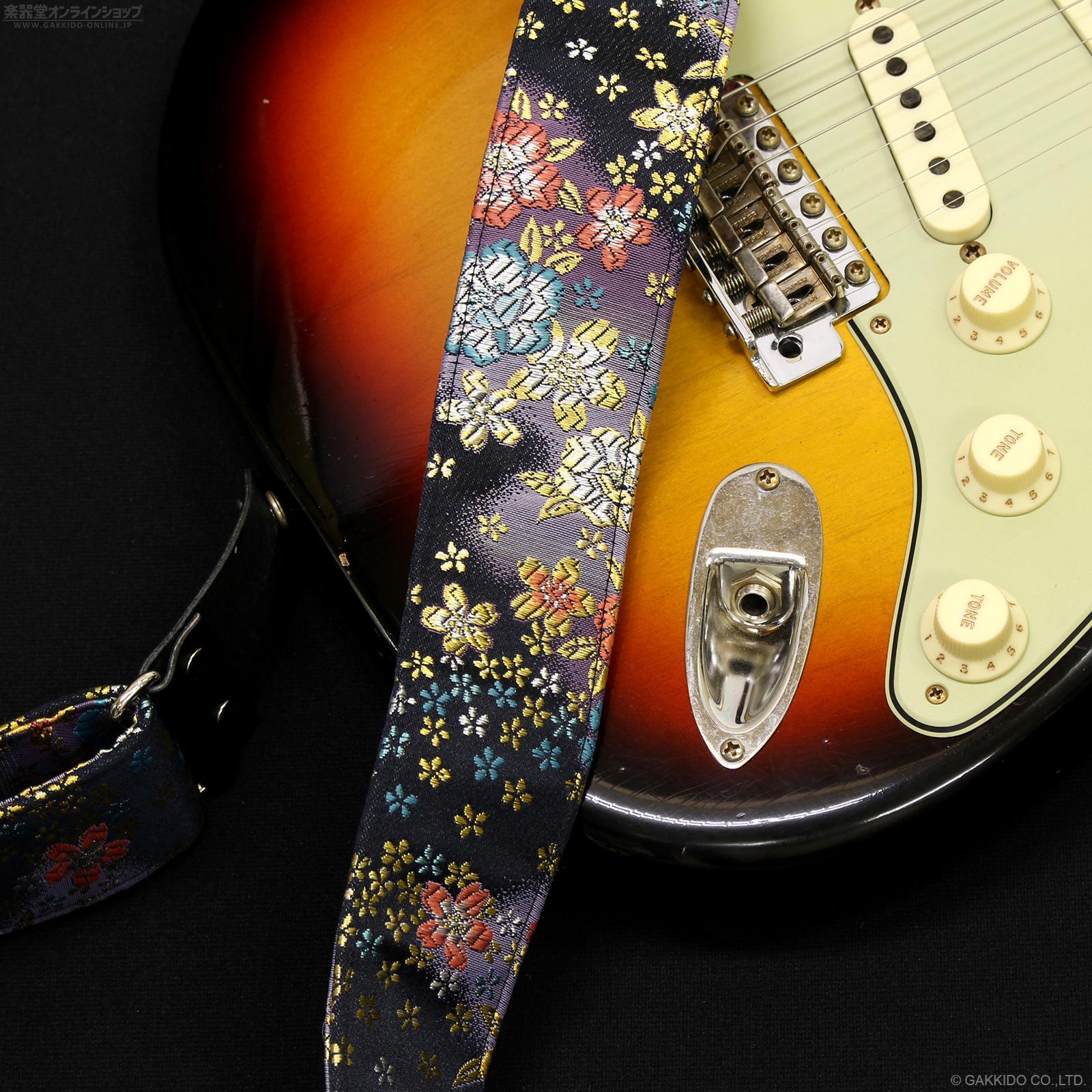 - > Harmonics J 西陣織ギターストラップ [ぼかし桜 濃紺色] 5cm