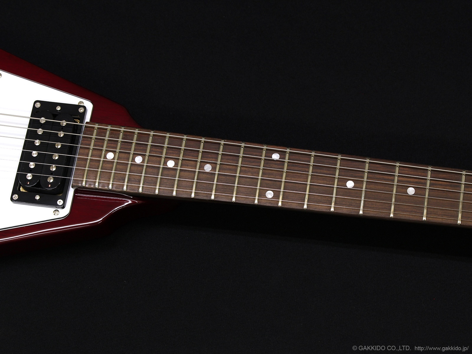 マホガニーボディ&ネック、22フレット・ローズウッド指板。人気のヴィンテージ・ホワイトカラー&指板ブロックポジションインレイ仕様。