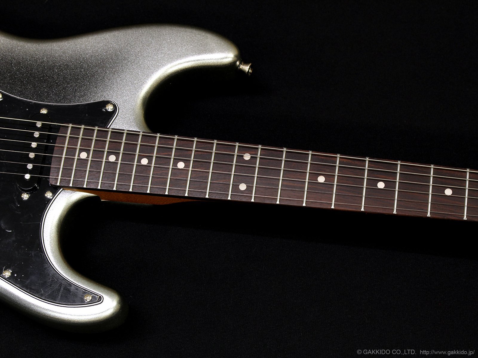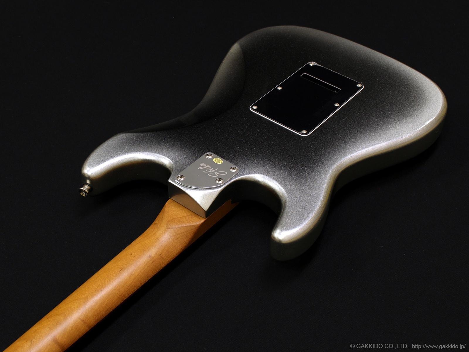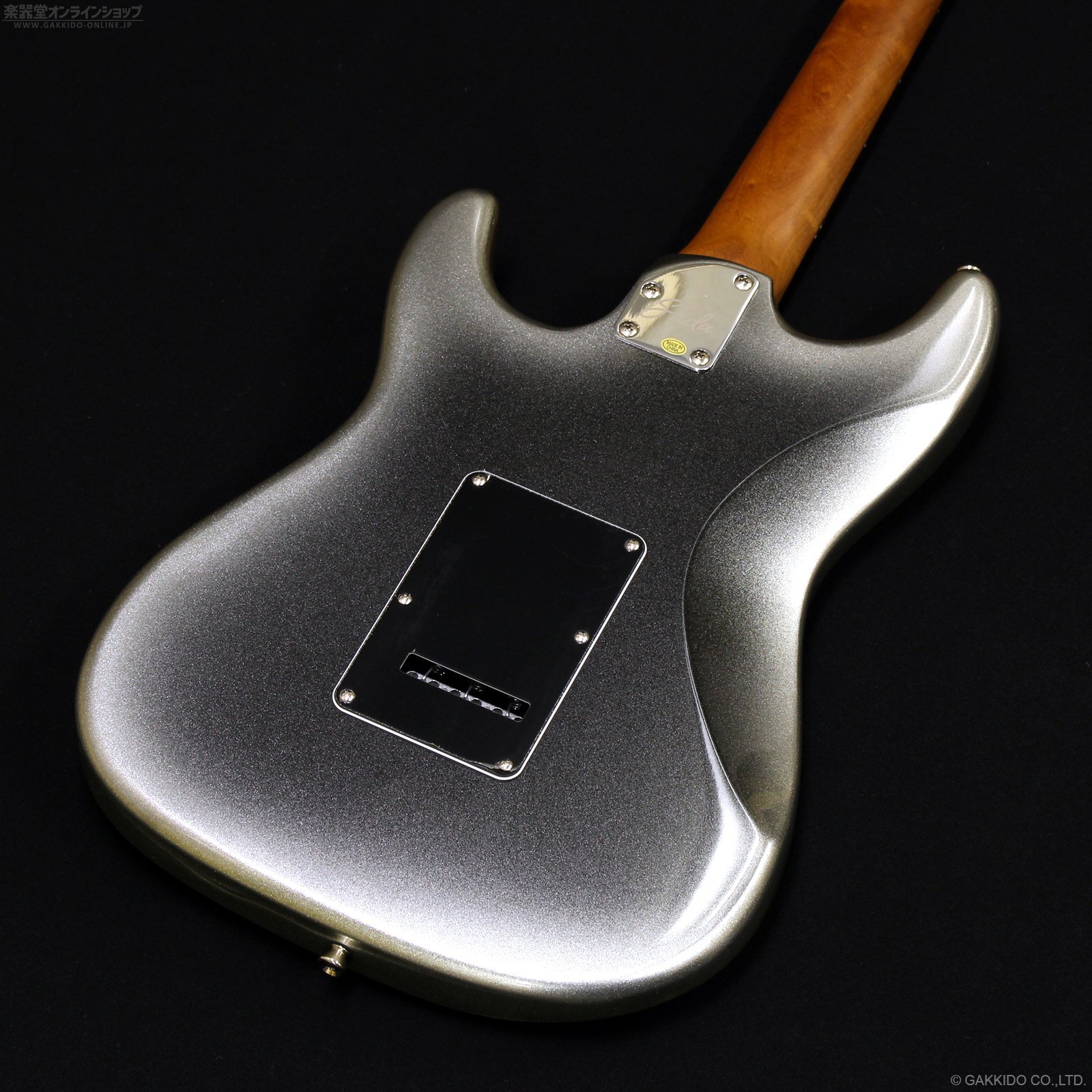 美しい木目のローステッドメイプルネック。格好いいシルバー・バースト・カラー