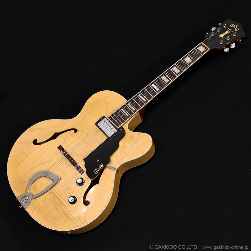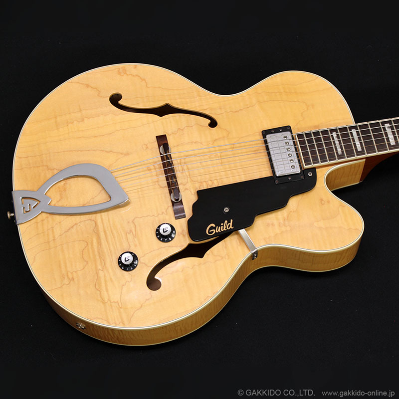 仕様などから見て2000〜2001年頃のモデルとみられるギルドX150 Savoy、ナチュラルカラー。