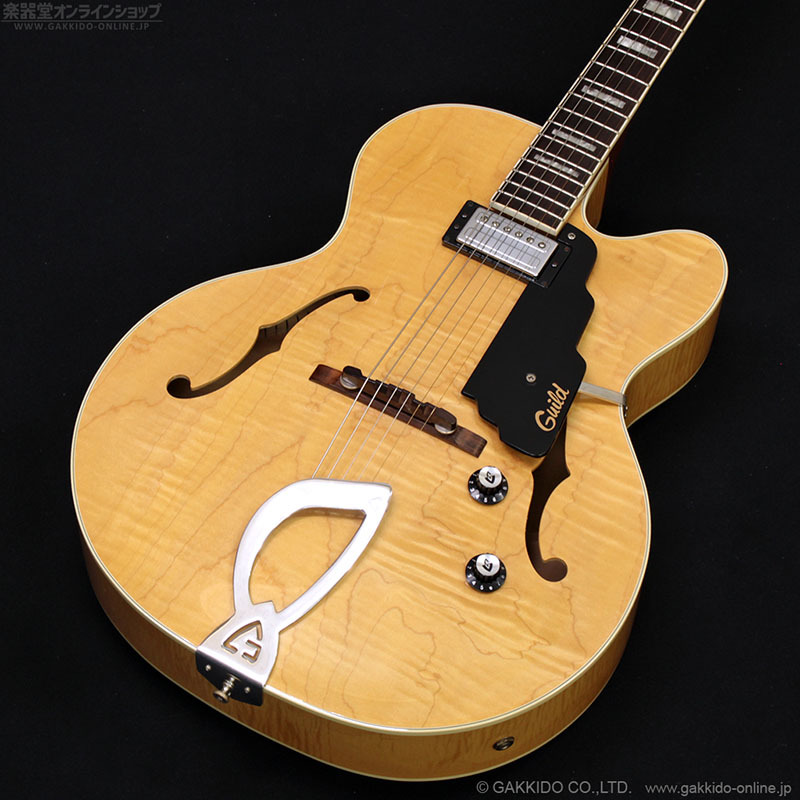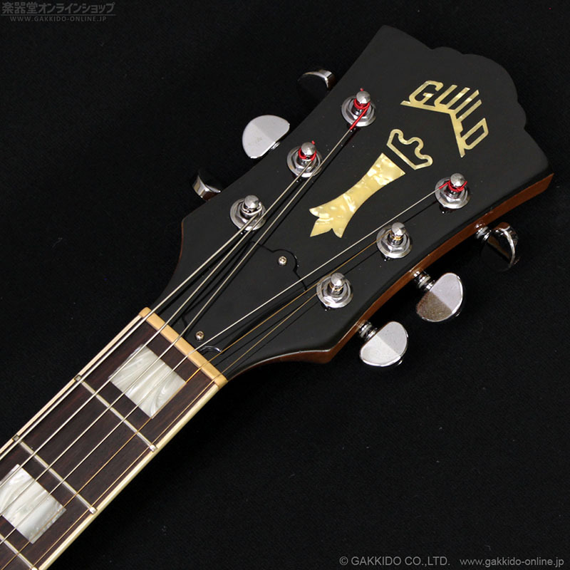 '95年にFender傘下となったギルドは、'60年代中頃から操業を続けていたロードアイランド州ウェスタリー工場を2001年末頃に閉鎖し、フェンダー社の工場があるカリフォルニア州コロナに移行し、その後いくつかの生産・経営体制の変更を経て現在に至りますが、こちらはウェスタリー工場製モデルとしてはおそらく再後期の物になると思われます。