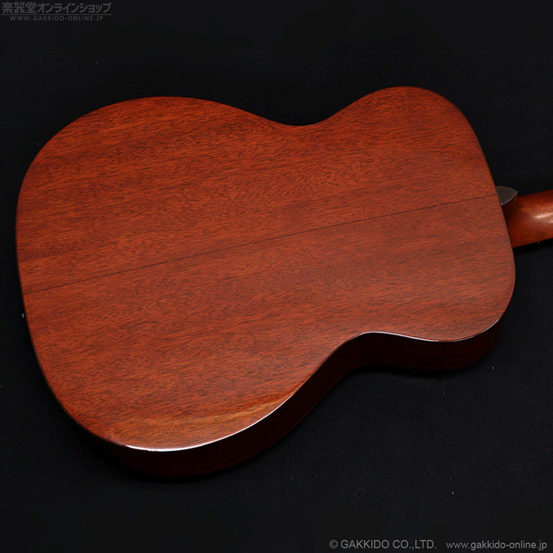 厳選されたアディロンダック・スプルーストップ、マホガニーサイド&バック、'30sスタイルのマーティンロゴ無しのVシェイプネックにエボニー指板の14Fジョイントモデル。