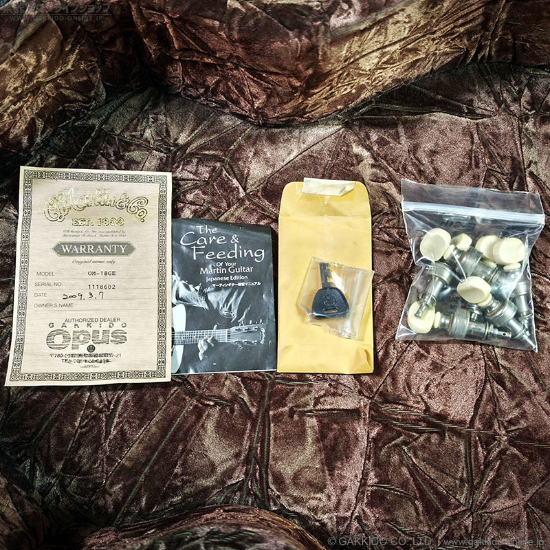 その名のとおり、黄金期のスペックを精巧に再現した人気シリーズ、マーティン・ゴールデンエラシリーズ。こちらは1930年当時のOM-18の代表的なスペックを再現したOM-18GEの中古品。2006年製の正規輸入品です。