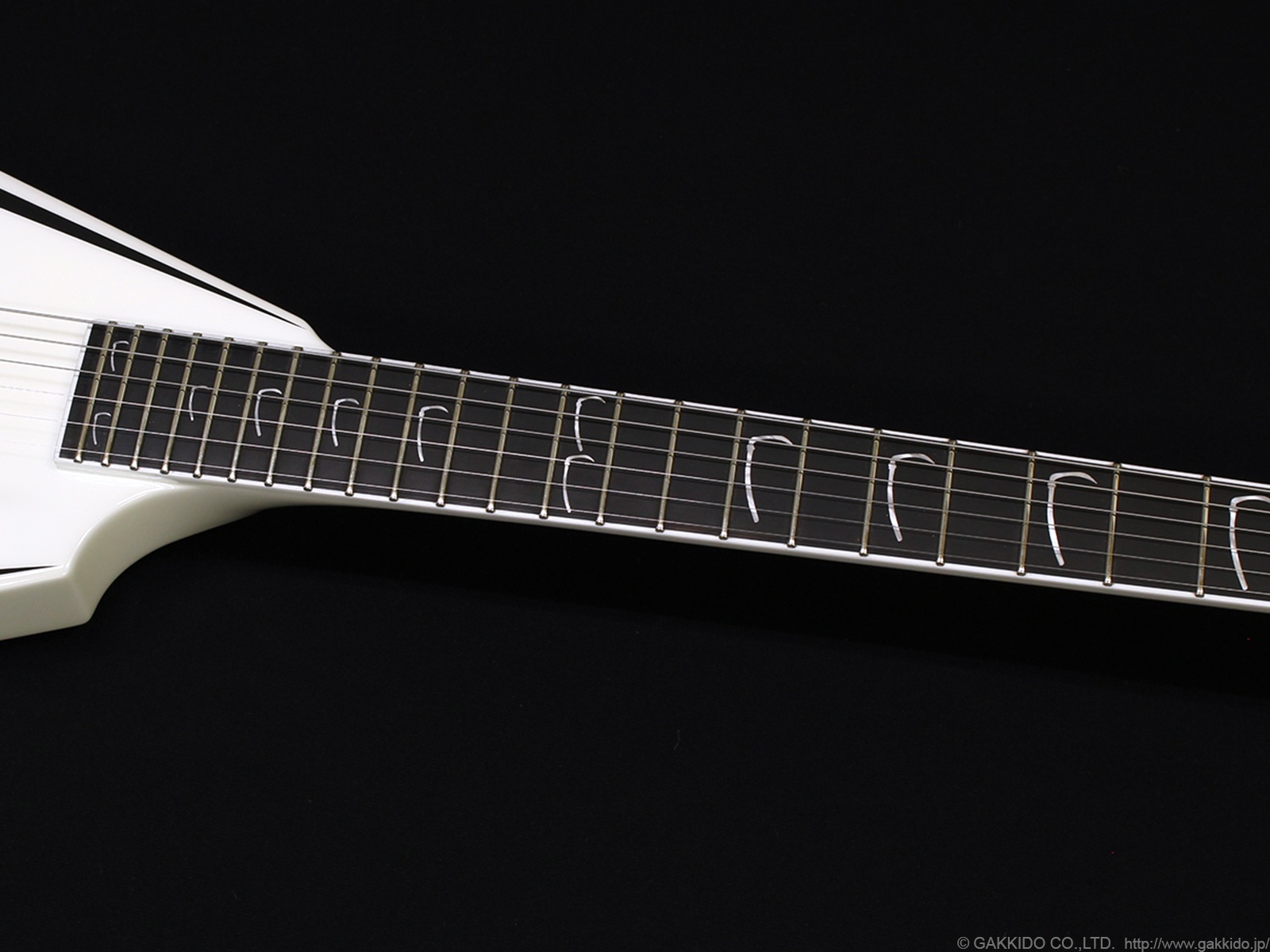 衝撃的なボディシェイプを閃かし、白にブラックピンストライプと死神の鎌をモチーフにしたインレイが魅力デスです。