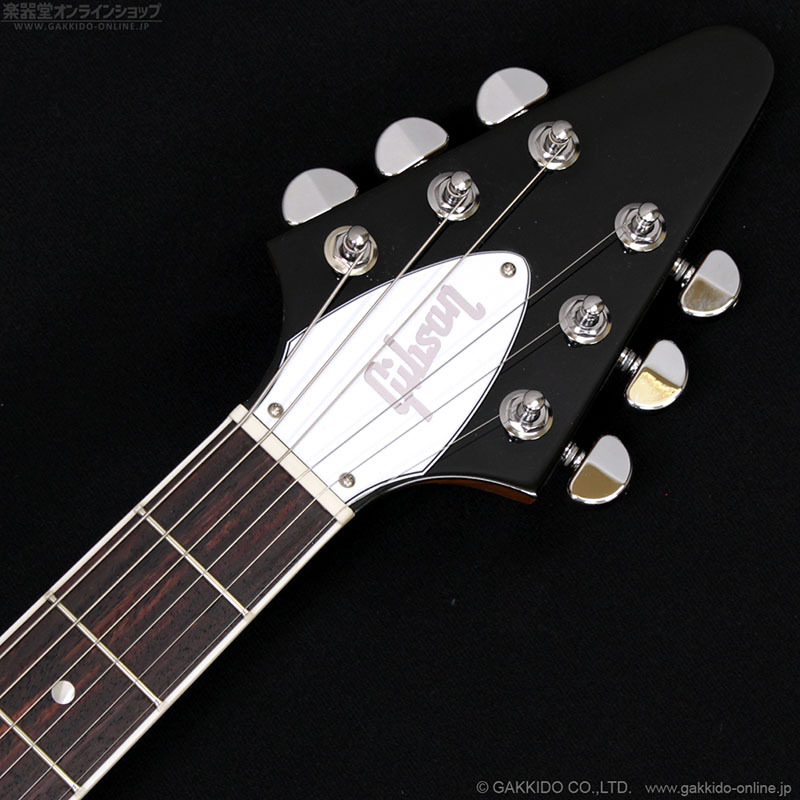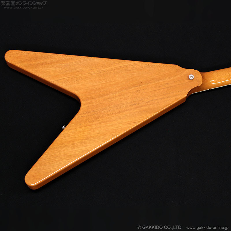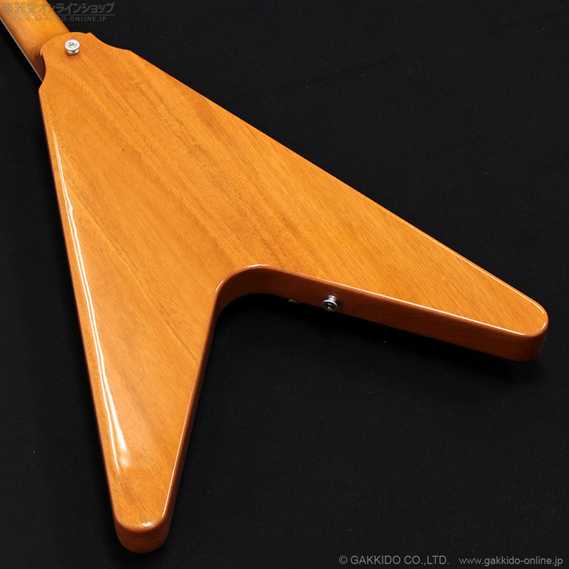 2基の“'70s Tribute”オープンハムバッカーピックアップやクロームハードウェアを搭載した'70sスタイルのギブソン'70sフライングV。アンティークナチュラルカラー。重量3.30kgと軽量です。
