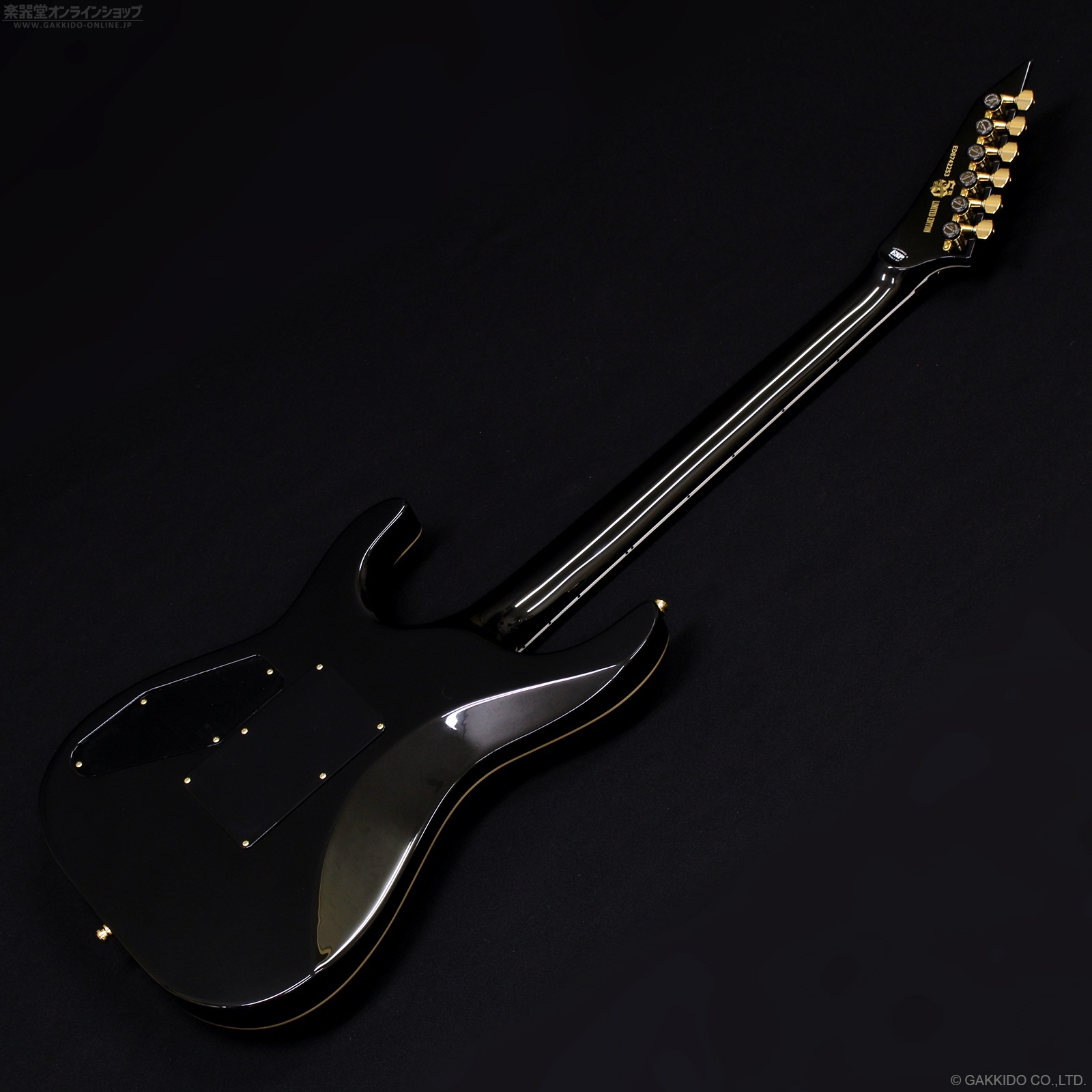 ゴールドパーツが高級感を演出し、さらにはヘッドのEDWARDSロゴは薄い白蝶貝を貼り付ける螺鈿を採用、また、ESPの50周年ロゴがトラスロッドカバーとヘッドバックに入れられています。まさにアニバーサリーモデルに相応しい特別感を備えたルックスに仕上がっています。