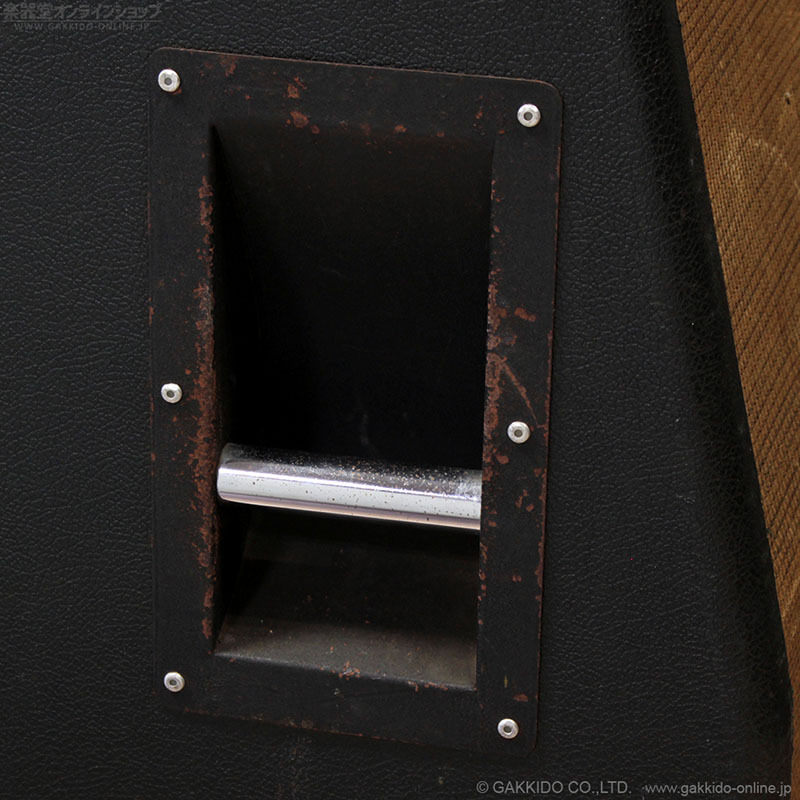 年式に関しては、コーナープロテクター無し、リベット留めの金属製サイドハンドル、ラージMarshallロゴ等の特徴などから判断すると'69〜'70年頃のモデルとみられます。