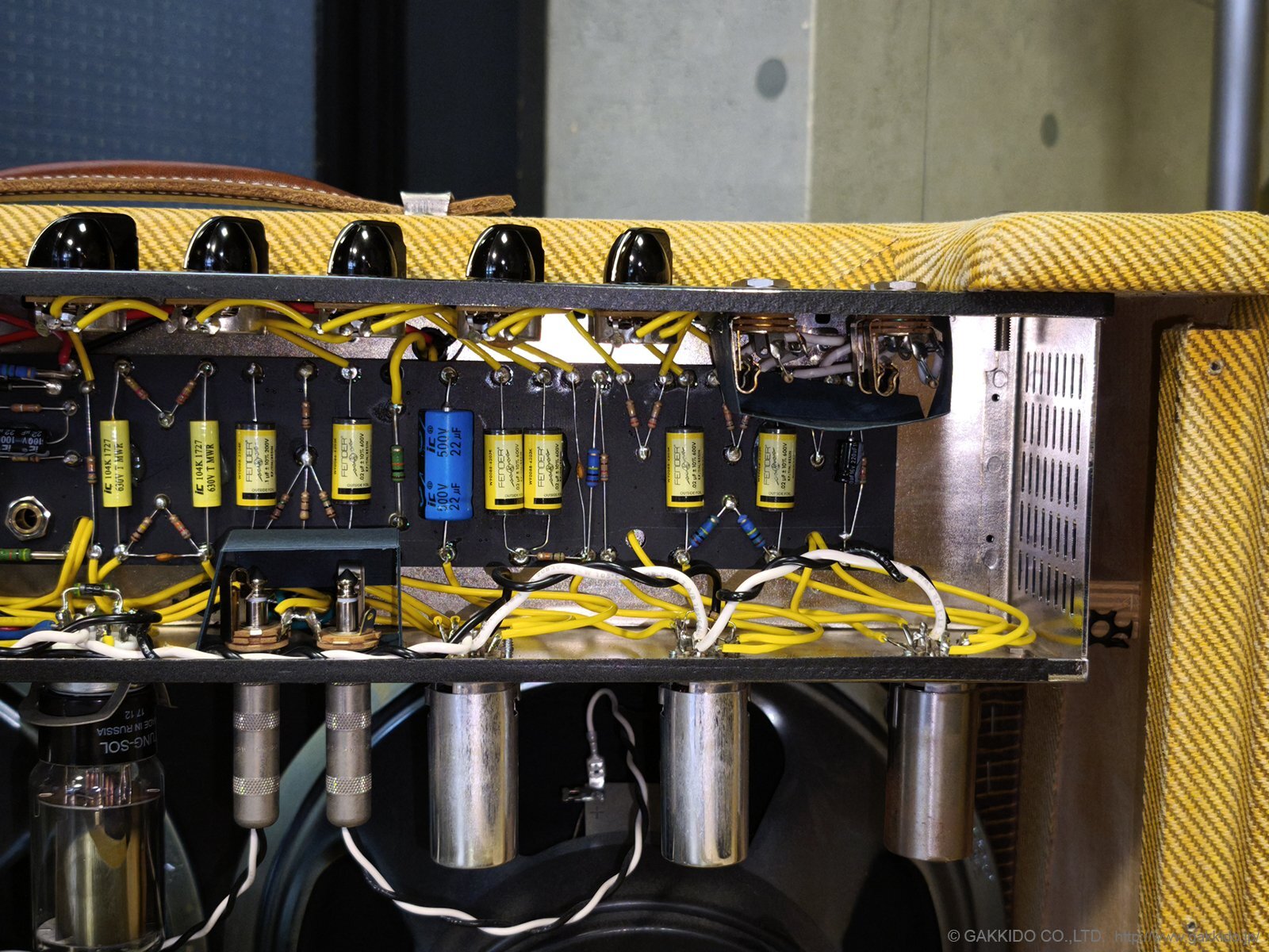 80WのハイパワーのTweed Twin Ampは今までリイシューされておらず、生産台数も約400台のみと言われる、かなりレアなアンプです。