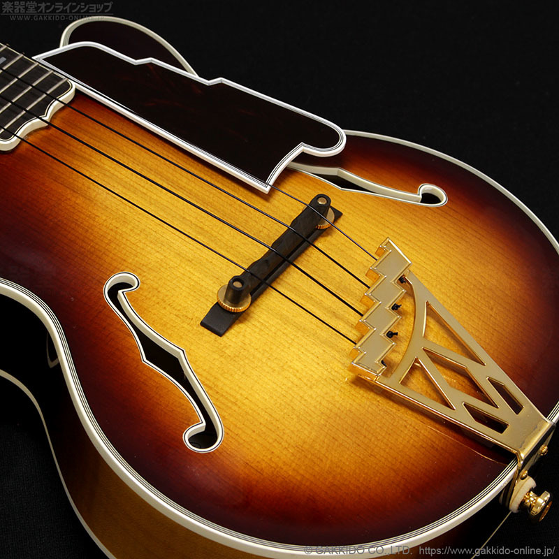 ・伝統的なダブテイル・セットネック・ジョイント工法やアーチドトップ構造、フローティング・ブリッジ等、楽器としての理想と完成度を極限まで高めたハイエンド仕様。