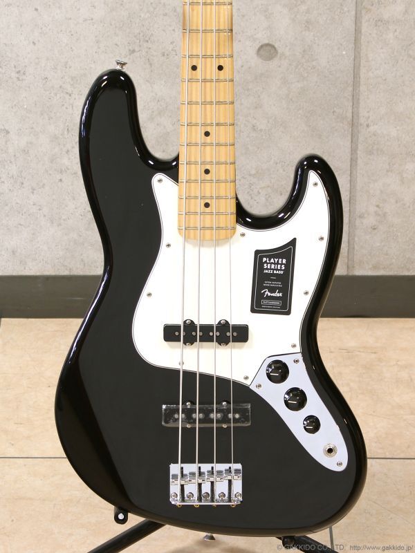モダンCシェイプのネックとクラシックなフェンダートーンを特徴とするジャズベース。格好いいブラックカラー