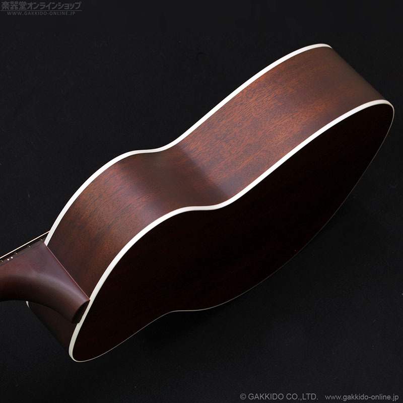 シトカ・スプルーストップ、アフリカン・マホガニーサイド&バックの組み合わせは、フィンガースタイルや軽快なストラミングに最適な、繊細で均整のとれたトーンを提供します。