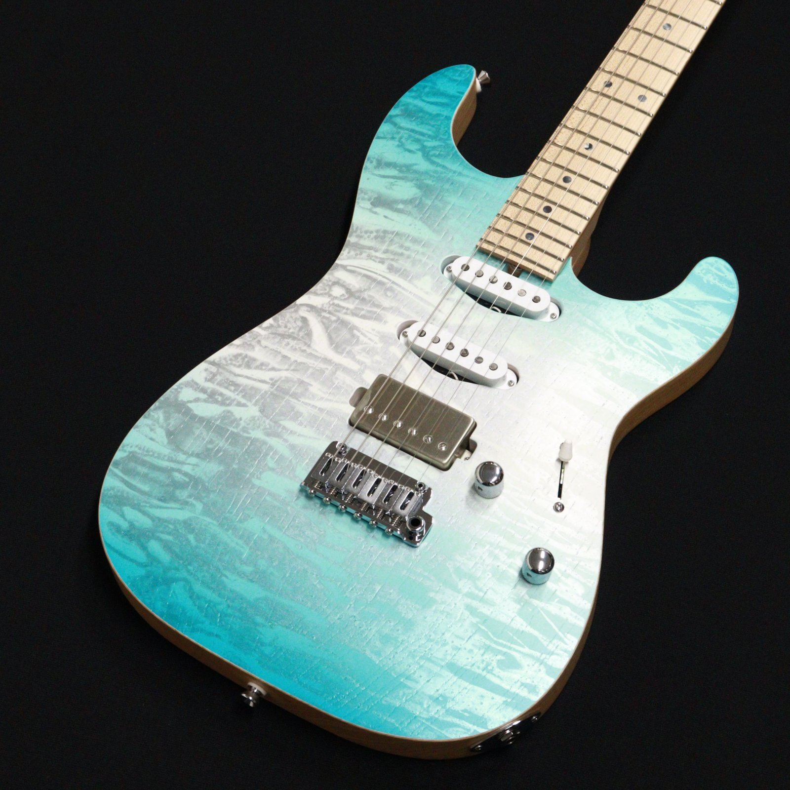 ボディベースにはユーザーからの人気の高いS-622を採用。STタイプのボディシェイプをベースに、モダンアーチトップと呼ばれる緩やかな曲線のトップを用いた、SAITOギターのラインナップの中でも高い人気を誇るモデルです。ボディには選定されたスワンプアッシュを使用。本体重量3.25kgと理想的な重量に仕上がっています。そして何より目を惹くボディトップカラー "kannagi"はSAITOギターの中でも クラスSに分類される特別な仕上げ。美しいフェイドはもちろん、光の具合によってその表情を変える特別なカラーです。鮮やかな碧の中に見える透明感のある白は日本の冬の情景を思わせる仕上がりです。マッチングヘッドカラーを採用することで統一感のあるルックスに。