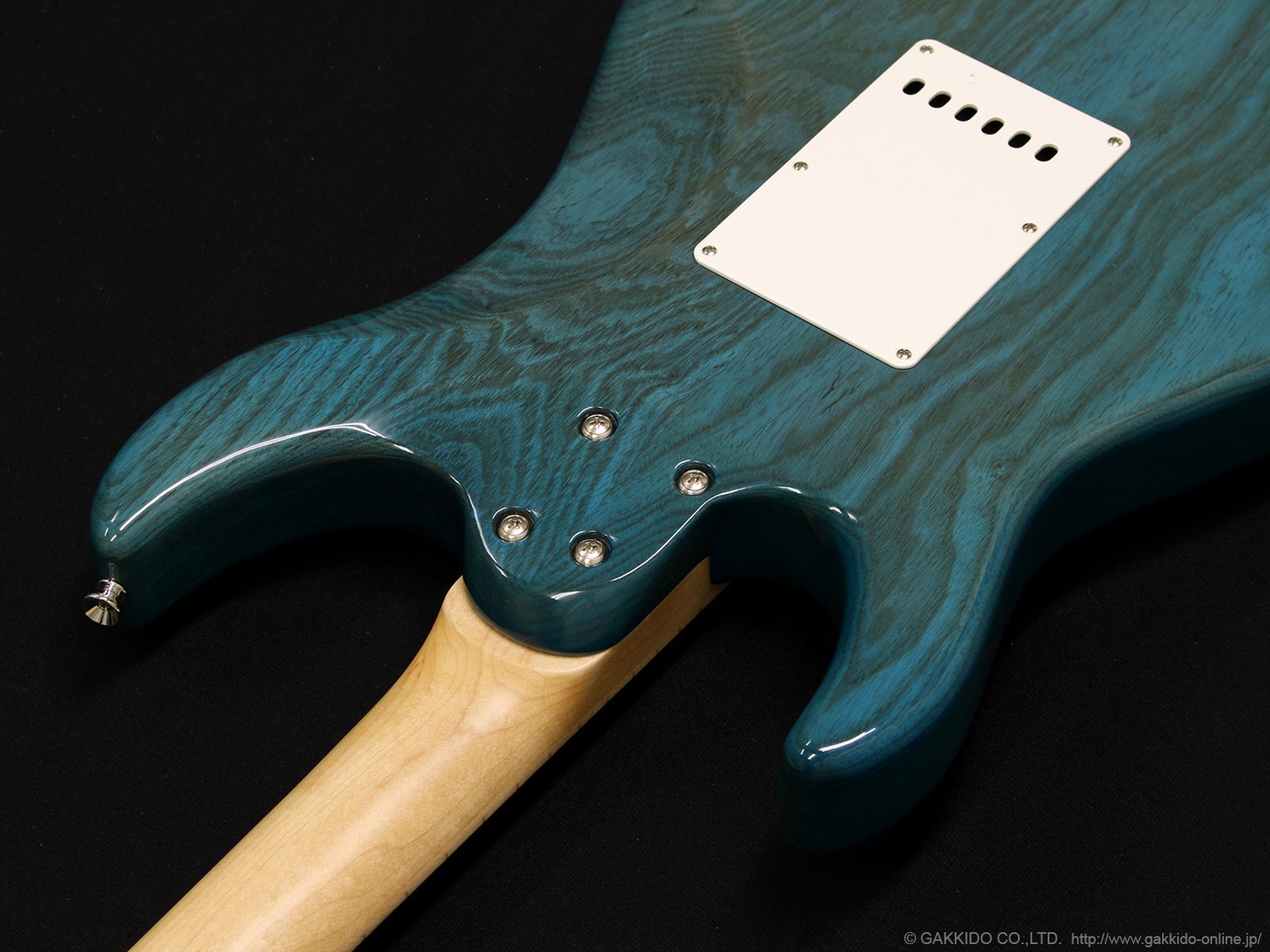 アッシュの木目が透き通って見える爽やかなブルーカラーのメイプル指板ver。モダンでスマートなオリジナルシェイプのボディに、24Fメイプル指板を採用。