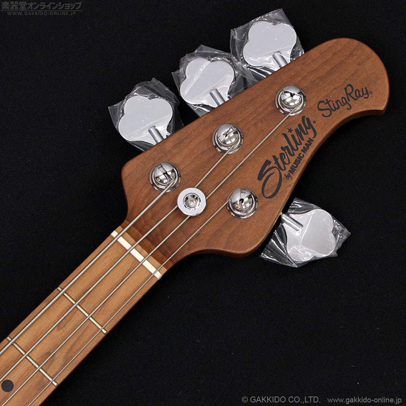 優れたコストパフォーマンスを誇るSterling by Music ManによるSting Rayタイプのベース“RAY34”。ゴージャスなブルー・スパークルカラー。