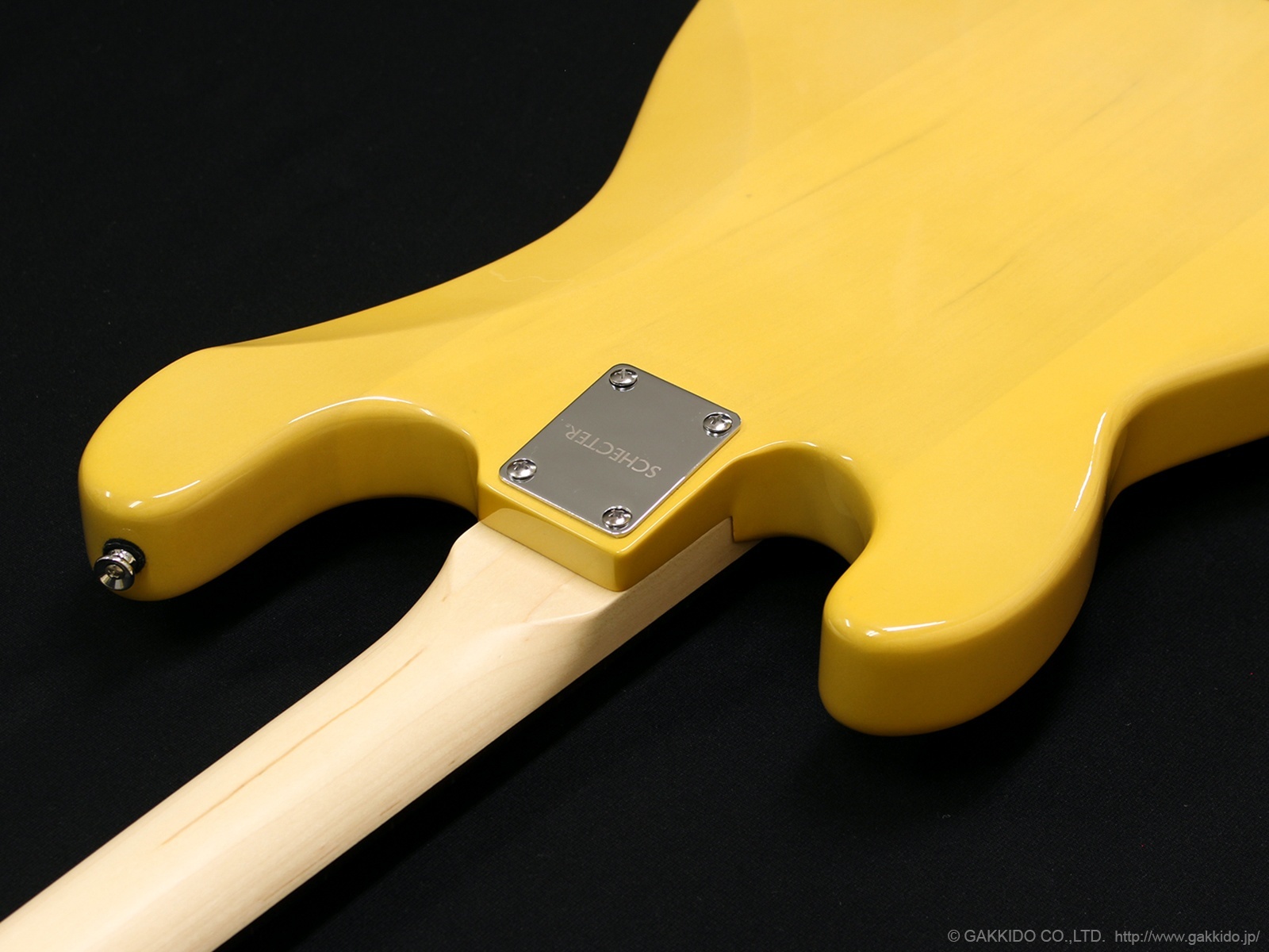 ボディにポプラ材、メイプルネック、濃い色のローズウッド指板を採用。ボディバックにコンター加工を施し演奏性も高めています。握りやすいネックやボディバックのコンター、斜めにカットが入ったアングルネックジョイント、21フレットなど現代的なスペックを持ち、この価格ながらシェクターらしいプレイアビリティが特徴です。
