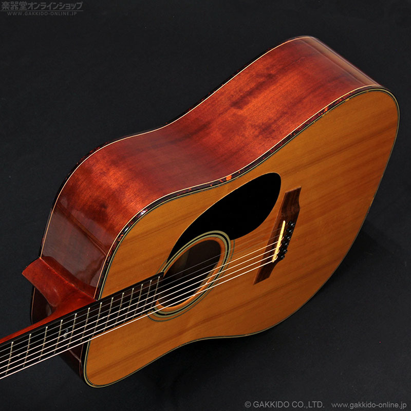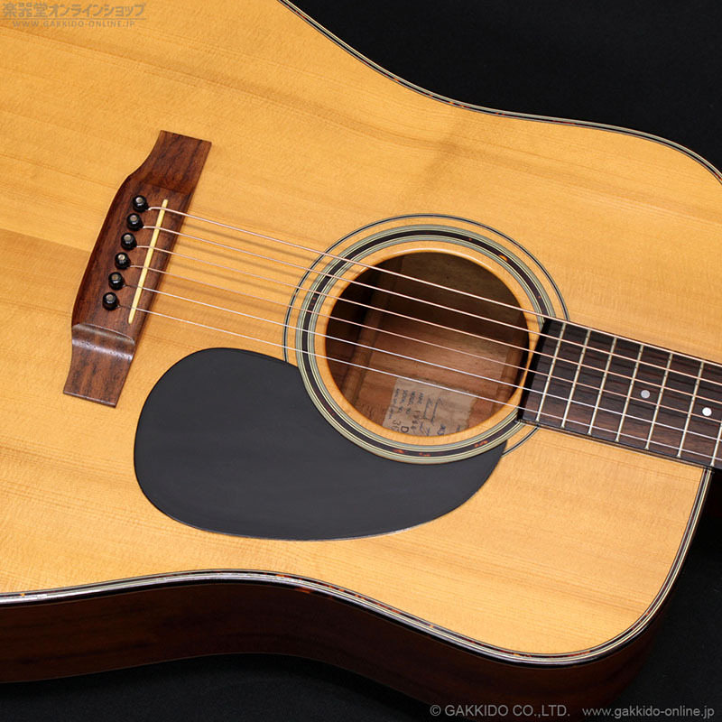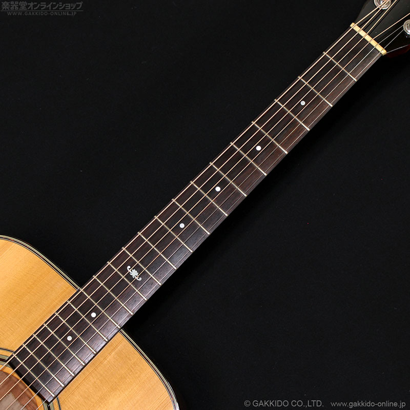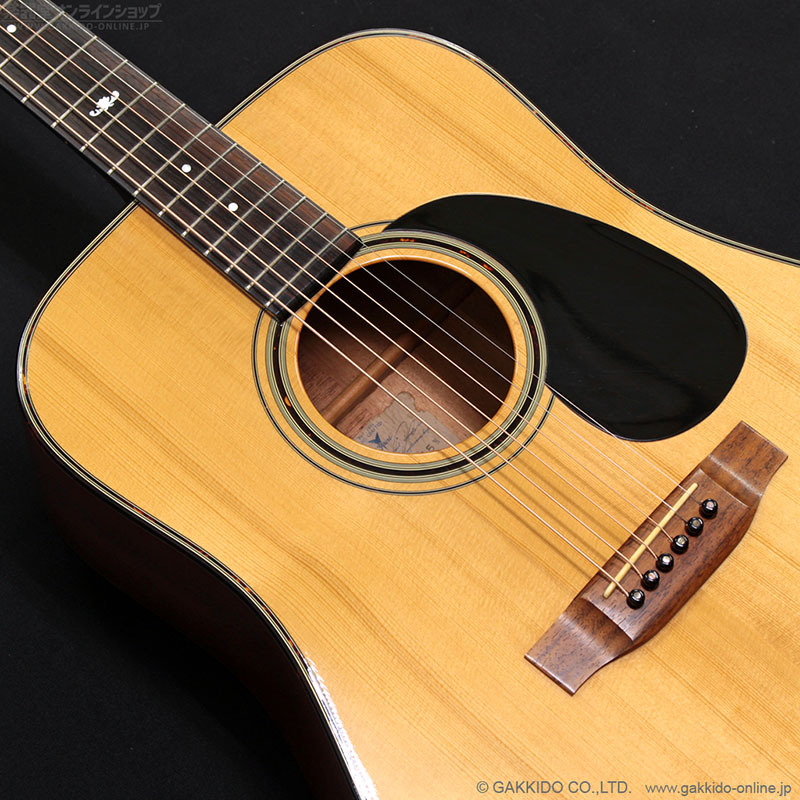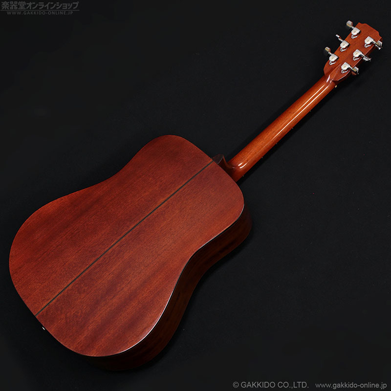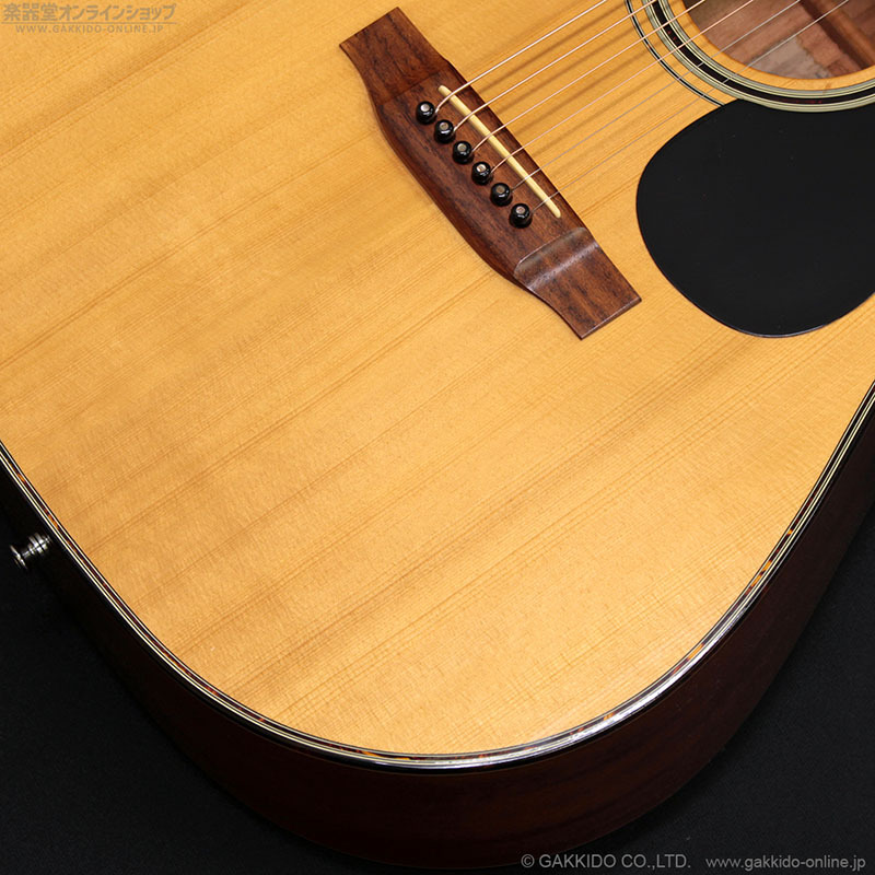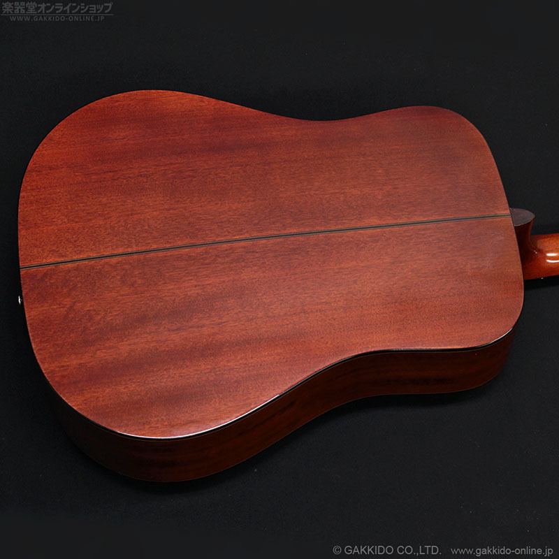 ドレッドノートシェイプのボディトップにスプルース単板、サイド&バックにマホガニー(ラミネート)を採用、ボリュート付きマホガニーネック&ローズウッド指板を採用した、スタンダードなスタイルのアコースティックギターです。