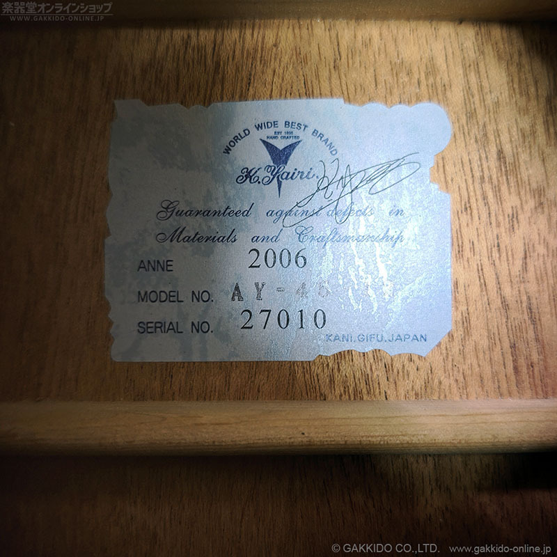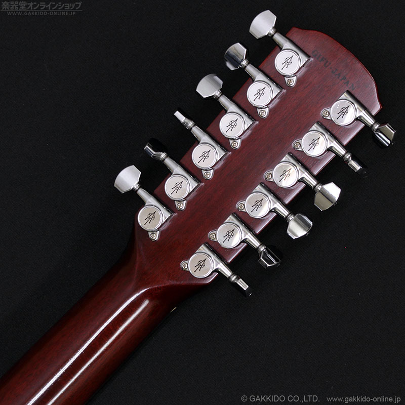 ナチュラルカラーのAY-38、サンバーストカラーのAY-45は、ドレッドノートサイズのアコースティックギターのエントリーモデルとして国内市場向けでも長年人気を博したモデルでした。12弦モデルはそもそもカタログ未掲載で受注生産扱いだったため、当時からなかなか見かけることのなかったレアモデルです。