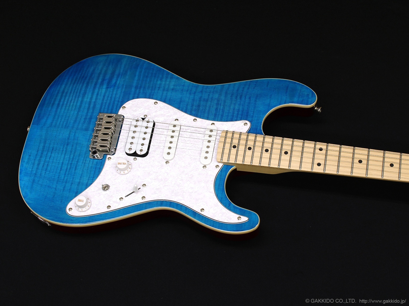 美しい木目のフレイムメイプル、5-Way SwitchとCoil-TapのS-S-Hスタイル