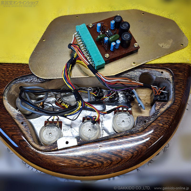 EQインテンシティーノブのゴムリングが欠品している以外はフルオリジナルコンディションですが、マスターVOLノブ、EQインテンシティーノブともに内部にレジンを入れて割れ補修されています。