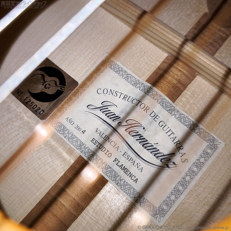 スペインで製作されるホアン・エルナンデスのフラメンコギターEstudio Flamencaの中古品。2004年製です。