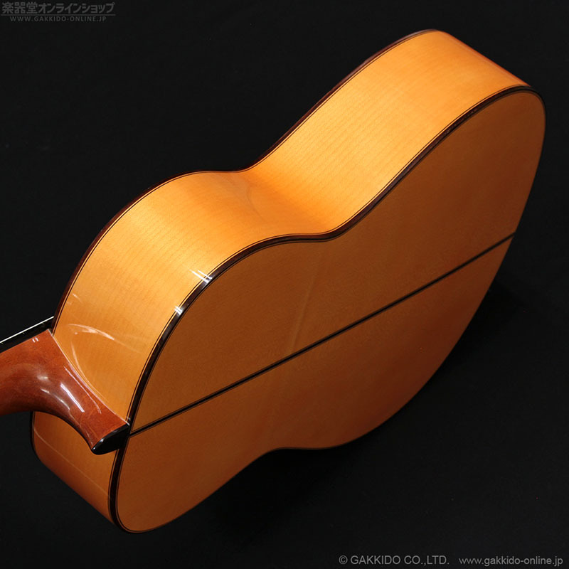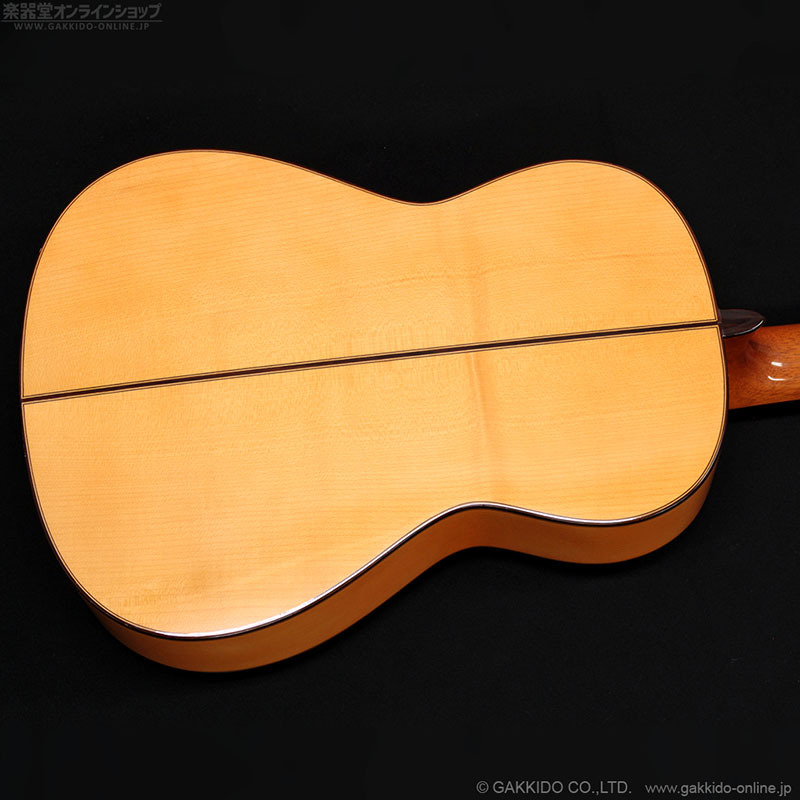 スプルース単板トップ、シカモア単板サイド&バックのオール単板ボディ。メイプルのような明るい色味の美しいシカモア材が使用されています。