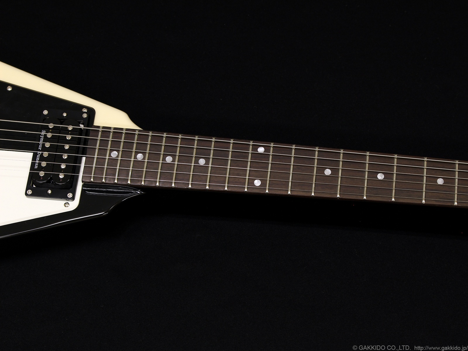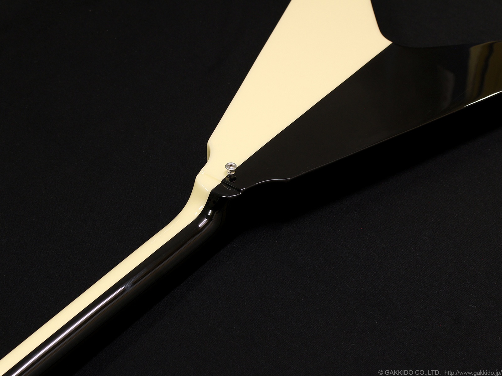 FV-MSはフライングV王道のマホガニーボディとセットネック。セイモアダンカン製のピックアップとの相性も抜群で、あの有名な「神」と呼ばれるギタリストの有名な2トーンモチーフを再現しております。
