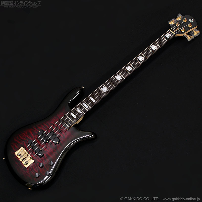 ゴージャスなキルトメイプルトップ&アルダーバックのボディに、3ピース・メイプルネック&24Fローズウッド指板をボルトオン。ピックアップにはアギュラー製オリジナルPJモデル、プリアンプにもアギュラーOBP-2を搭載した本格アクティブPJベースとなっています。