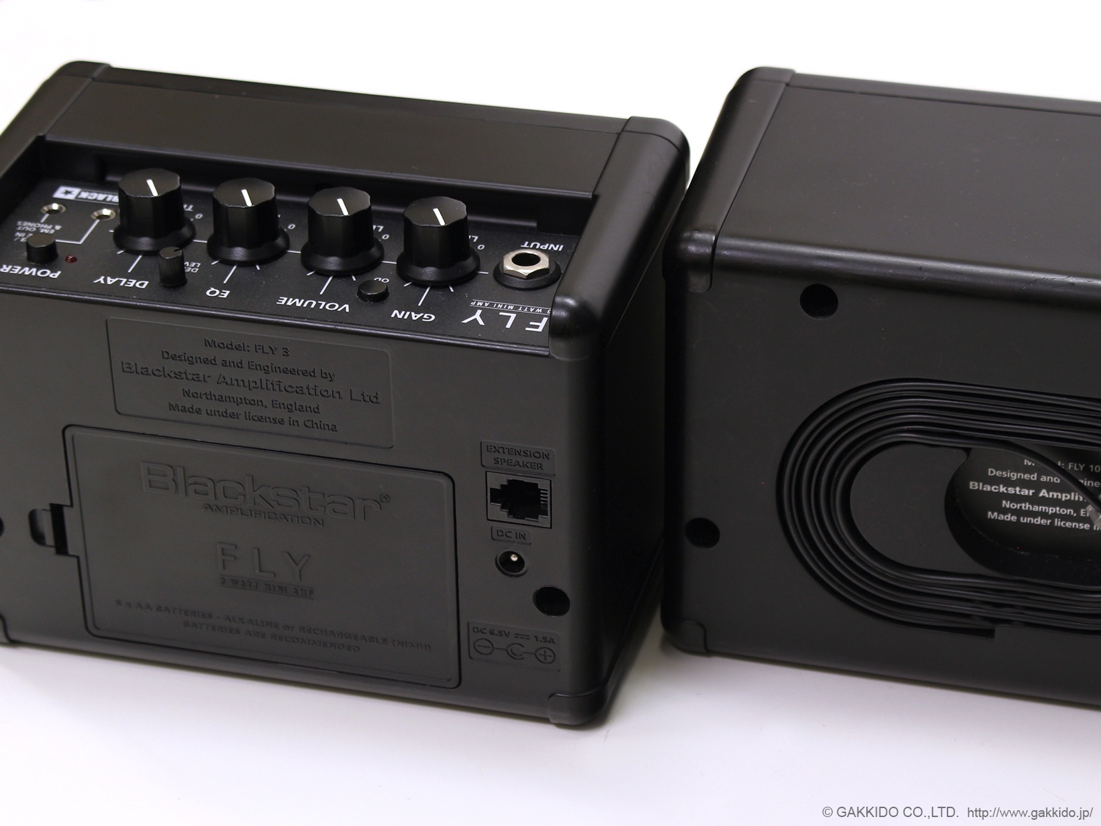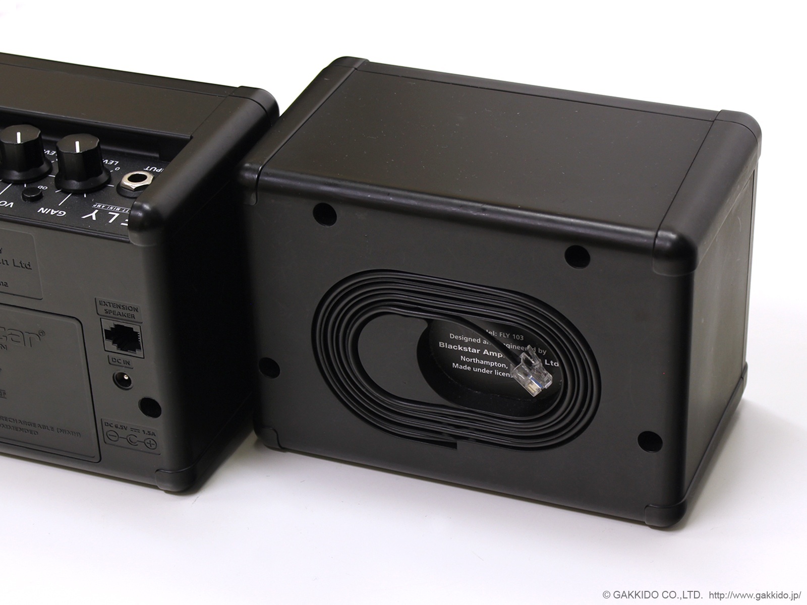 FLYステレオパックには、FLY 3ミニアンプ、FLY 103拡張キャビネット、および電源が含まれています。 FLY3とFLY103を組み合わせると、ギターや音楽の再生に適した6ワットのステレオアンプになります。
