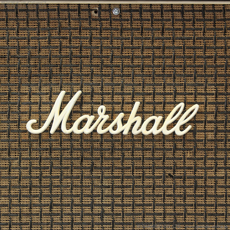 グリル(兼バッフルプレート)を固定するネジ穴が開け直されています。その他Marshallロゴ交換。キャスター欠品。全体的に使用感があり、カバリングの破れ、傷、コーナープロテクターの欠損、グリルクロスの汚れ・ほつれなど見られますが動作の方は特に問題は見られません。コーナープロテクターはリベットではなく+ネジで固定されています。