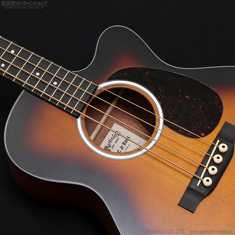 2023年製のマーティン000CJR-10Eアコースティックベースの中古品。タバコサンバーストカラー。現行モデルの000C Jr E Bass Burstの先代モデルにあたります。