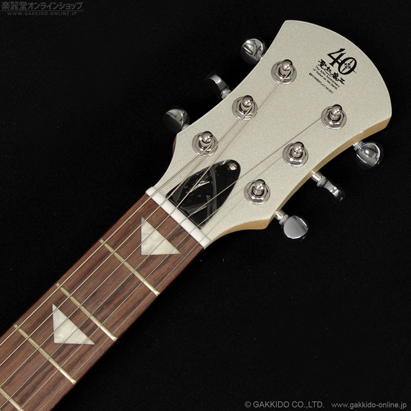 指板インレイが今回はトライアングルタイプになっている点にも注目!ヘッドには聖飢魔II 地球デビュー40周年ロゴがあしらわれています。