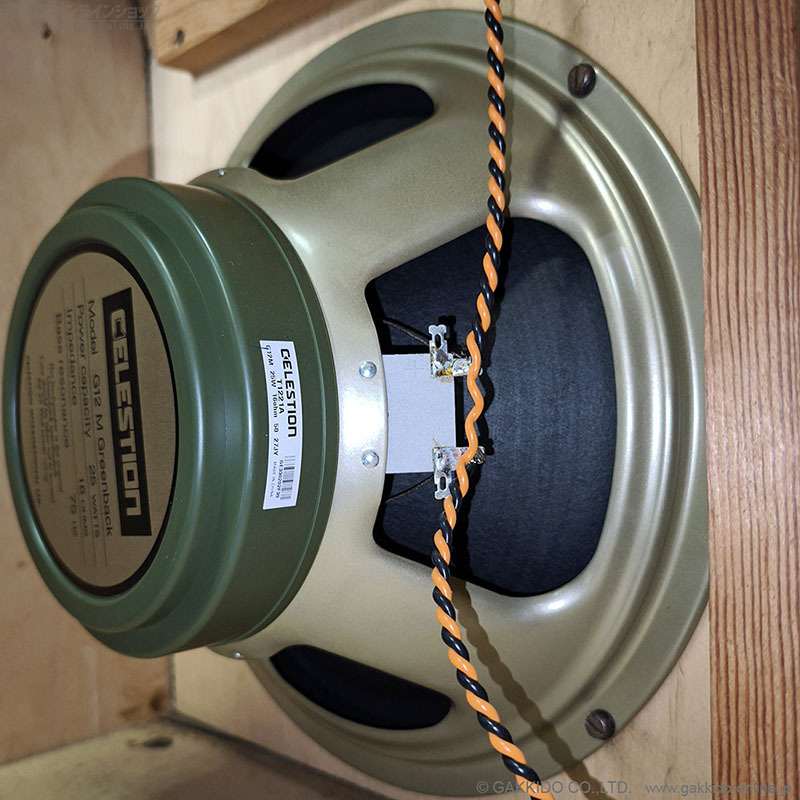 搭載スピーカーの4発中2発はオリジナルのPre Rola期の'69年製セレッションG12Hグリーンバック(30W)、1発がRola期の'72年製G12Hグリーンバック(30W)、残りの1発が現行タイプの2013年製G12Mグリーンバック(25W)となっています。