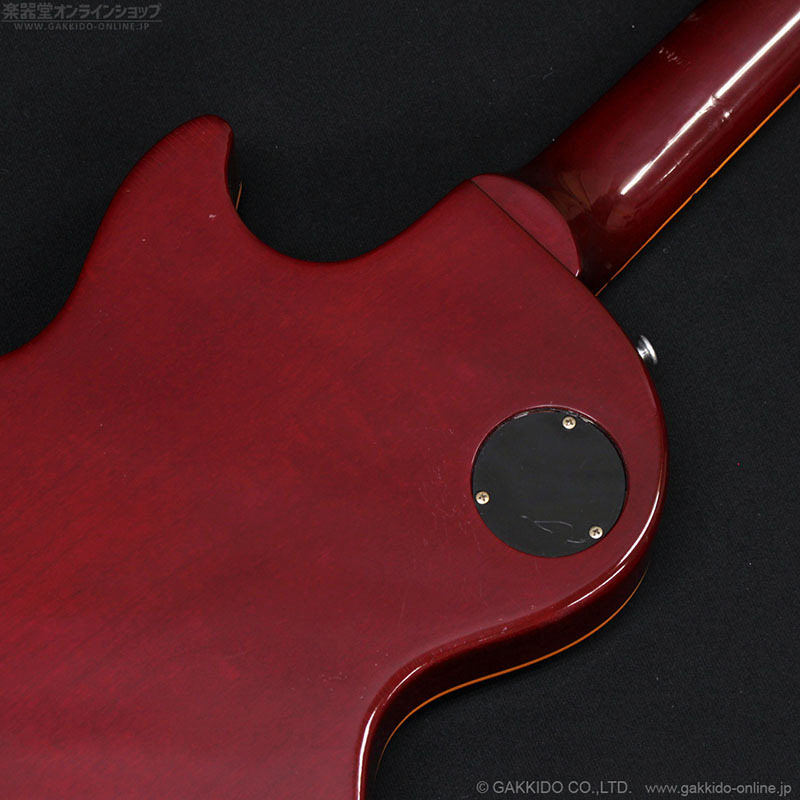 ネックのナット裏付近にネック折れをリペアした跡が見られます。その他11F裏付近とボディ下部のバインディングにスタンドによるラッカー焼けが少々見られます。また、写真ではなかなかお伝えしづらいですが、ボディ側面やネック裏は全体的にかなり細かな塗装クラックが見られます。