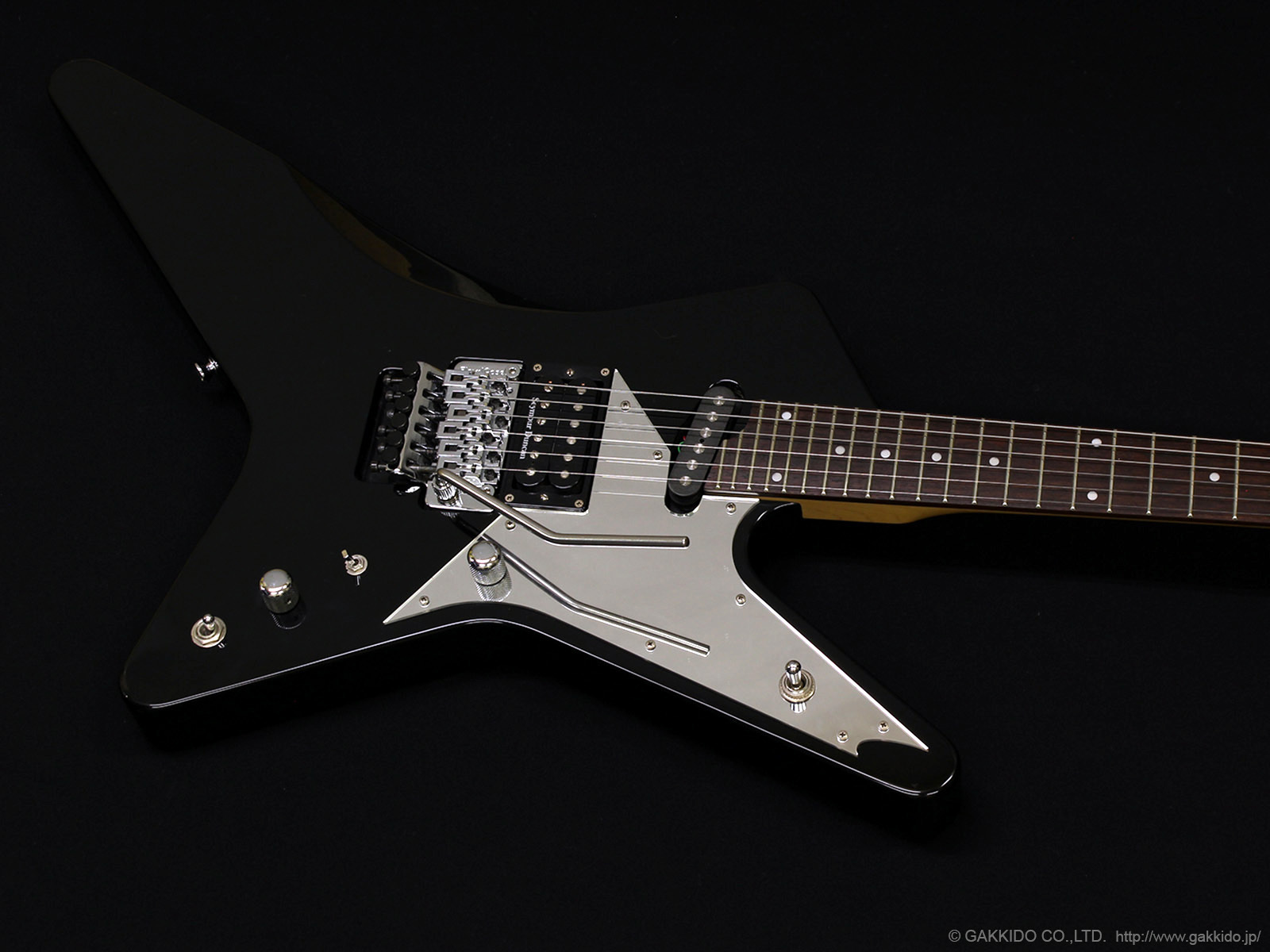 「クライイング・スター」というシェイプはワイルドなシルエットが特徴で、エクスプローラーとVシェイプを融合させた小型ボディと矢のようなヘッドストックで、アグレッシブなルックスのギター。