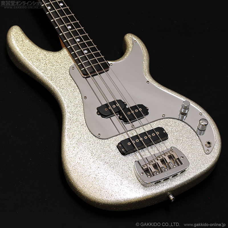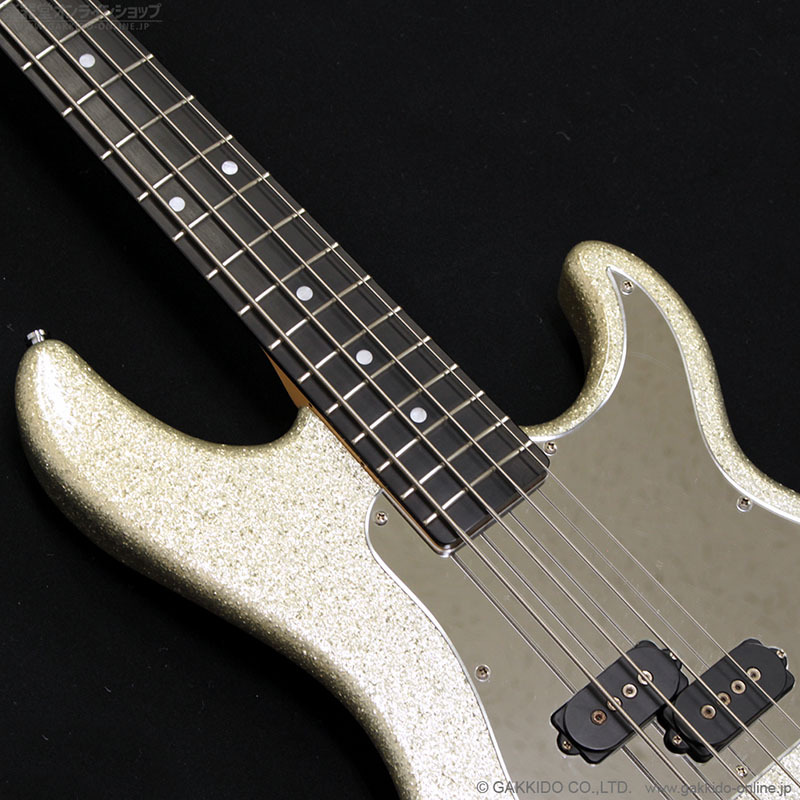 大きなラメのシルバーフレークカラー&ミラーピックガードモデルで、通常のSB-2はローズウッド指板でしたがこのカラーに限りエボニー指板が採用されていました。コントロールも通常モデルと異なり、フロントVOL/リアVOLのスタックノブ+マスタートーンとなっています。