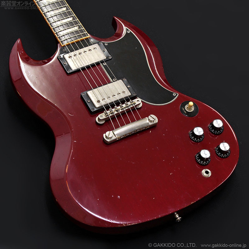 ギブソンSGの人気モデル、'61リイシューの中古品。'97年製。ヘリテージチェリーカラーです。